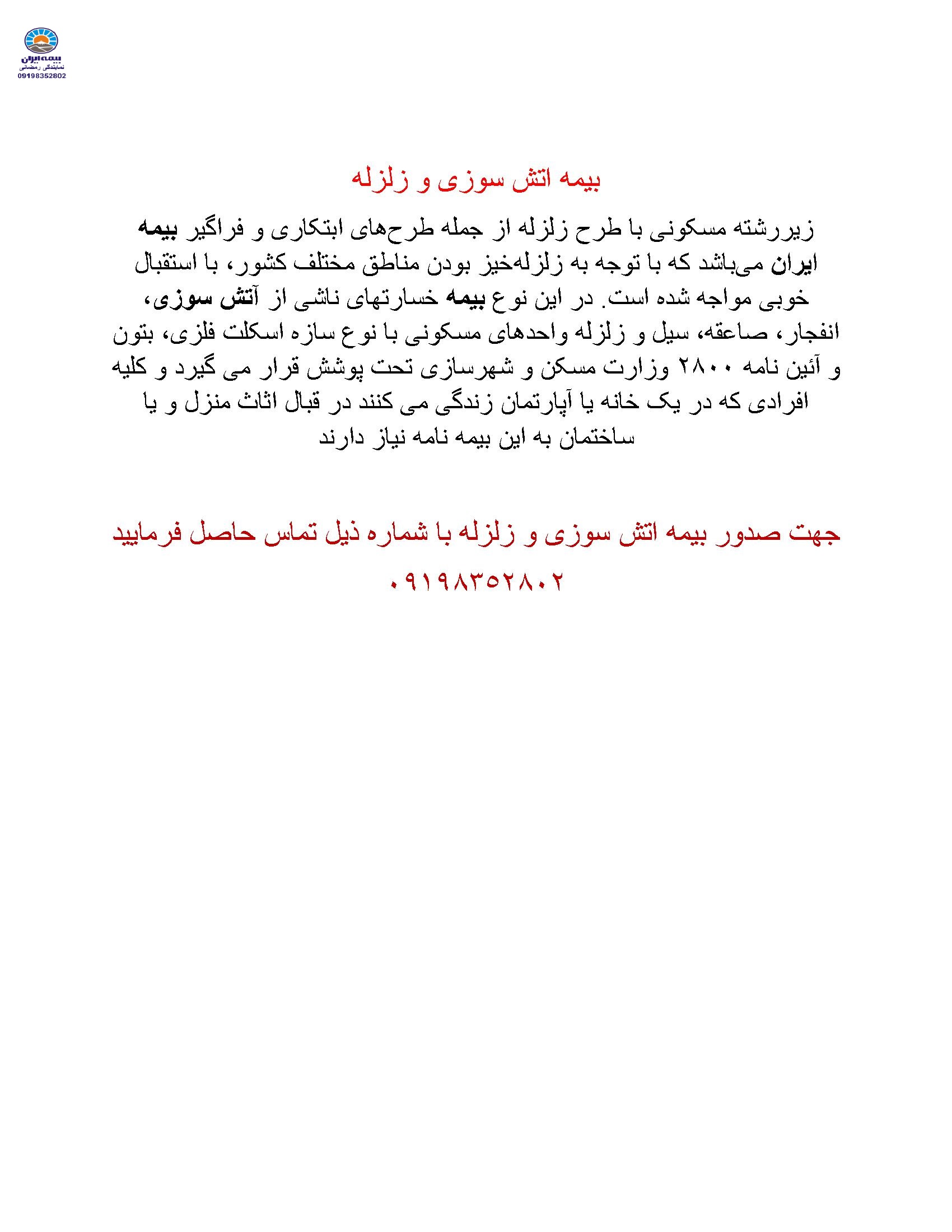 بیمه اتش سوزی و زلزله